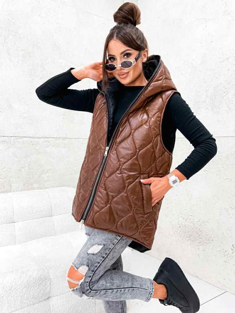 Stylowa pikowana kamizelka z kapturem to must – have w Twojej garderobie, Wykonana z wysokiej jakości materiałów, idealna na chłodniejsze dni. Model o asymetrycznym kroju, zapinany na zamek, z dużym kapturem dla dodatkowego komfortu, Wydłużony tył wyszczupla sylwetkę, ciepła a lekka dzięki super nowoczesnemu wypełnieniu.