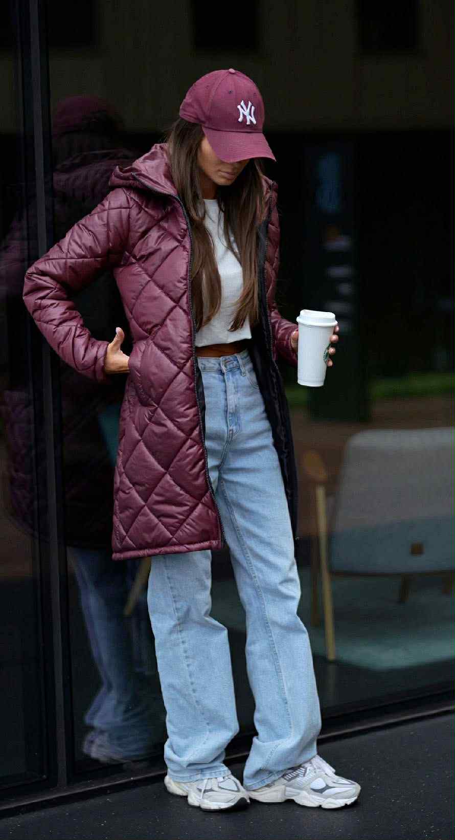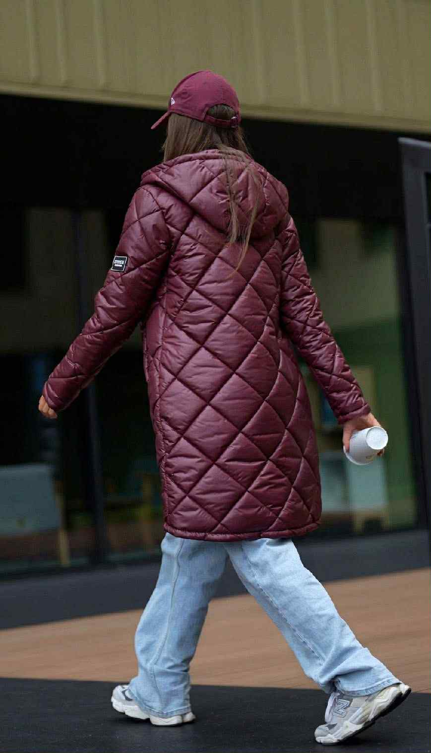 Kurtka pikowana przedłużana z kapturem i zasuwana na zamek